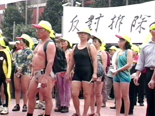 據(jù)臺灣媒體報(bào)道,抗議民眾拉著白布條,有人只穿著泳衣、泳褲,高喊著“還我市立游泳池,我要游泳、我要游泳!”