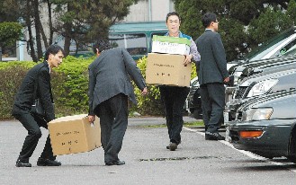 力晶涉嫌介入旺宏股票內線交易案,大批證物和人員今天上午被移送新竹地檢署。(聯合晚報圖)
