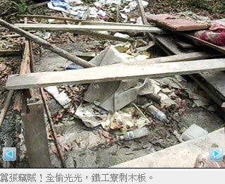 一整棟的鐵皮屋連同基座,總重大約4000多公斤,加上鋤頭、鐮刀和馬達,凡是鐵制的用具無一幸免。地上的鐵條和塑料桶,也留下乙炔燒過的焦黑痕跡,就連放在工寮里的鐵床,也被拆得只剩木板。