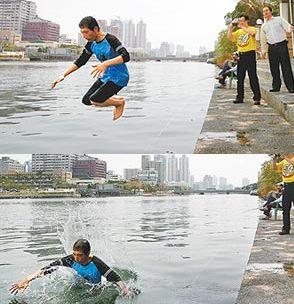謝長廷死忠支持者愿賭服輸 高雄市跳愛河(圖)