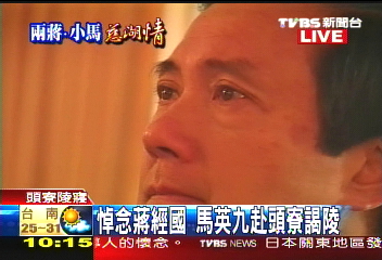雖然這一次馬英九沒有在頭寮陵寢對蔣經國行下跪大禮,但他仍是深深的三鞠躬,神情肅穆哀戚,眼眶泛紅的馬英九最后更是忍不住拿出手帕拭淚,或許是因為一時間激動的情緒還不能恢復,馬英九也臨時取消了原訂將在頭寮所進行的媒體談話。 (云鵬)
