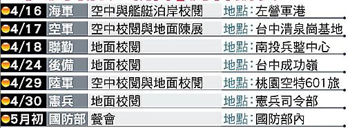 有臺軍爆料指出,光一個海軍泊岸校閱,各式船艦由駐地返回左營軍區所花的油料費用已高達千萬元新臺幣,未來臺灣陸、空、聯勤、憲兵及臺當局“后備司令部”的油料、裝備等費用,加總將要花超過億元新臺幣的防務經費,“讓一個卸任‘元首’花防務訓練經費,簡直是浪費。”
