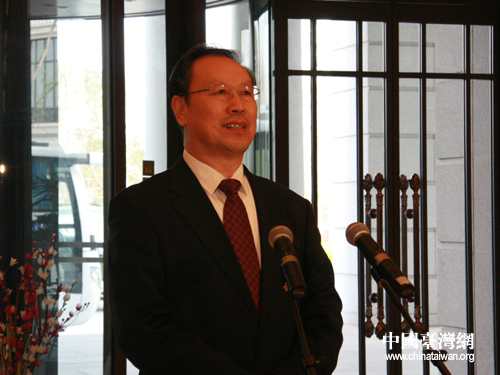 全國政協副主席、中共中央統戰部部長杜青林在會見參加中國和平統一促進會第七屆海外統促會會長會的全體人員時講話。