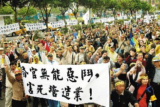 臺灣區(qū)營造公會上午動員數(shù)千人,前往“工程會”陳情,抗議臺當局未信守承諾。臺灣《聯(lián)合晚報》屠惠剛攝