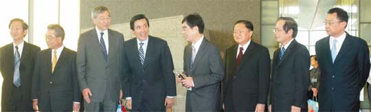 馬英九昨天由內定“行政院秘書長”薛香川、“經濟部長”尹啟銘陪同,前往內湖科技園區,和包括光寶科技董事長宋恭源、華碩董事長施崇棠、宏碁董事長王振堂、華邦電子董事長焦佑鈞、神達董事長苗豐強、臺達電董事長鄭崇華、友達董事長李焜耀、仁寶計算機董事長許勝雄座談。八大集團的產值超過兩兆新臺幣,馬英九相當重視,原本計劃談一個小時,最后談了近兩小時。