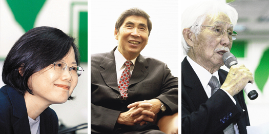 圖為3名民進(jìn)黨主席參選人,從左往右依次為:蔡英文,蔡同榮,辜寬敏。(圖片來(lái)源:臺(tái)灣《聯(lián)合晚報(bào)》)