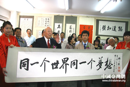 中國臺灣網(wǎng)5月8日北京消息 今天上午10點,正值北京奧運圣火首次登上地球之巔珠峰之際,當(dāng)代著名書法家張仲愈先生的迎奧運書法匯報展在北京榮寶齋開幕。開幕式上,張仲愈先生向北京奧組委捐贈大幅作品“同一個世界 同一個夢想”和一副六尺楹聯(lián) “奧運雄風(fēng)健兒名揚四海;中華盛世英雄功耀九州”;向國際奧委會主席羅格先生贈送一副8尺橫幅作品“更快、更高、更強”。