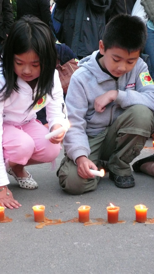 以下組圖為燭光祈福會的溫馨感人瞬間。(圖片提供:司徒北辰 現在法國留學 曾任新京報記者)