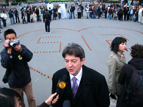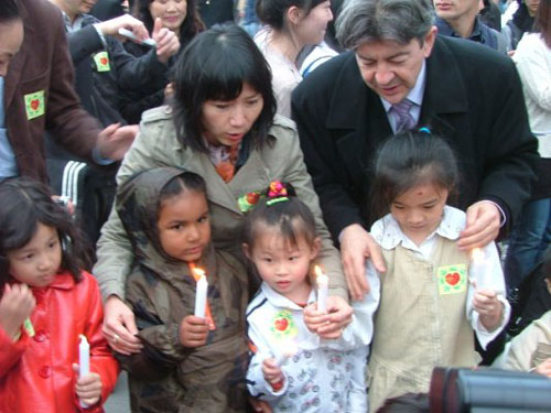 中國臺灣網5月19日消息 巴黎當地時間5月18號晚,近千名在法華人、華僑、留學生和法國友人聚集在埃菲爾鐵塔下,為“5?12”四川大地震遇難者舉行燭光祈福會,以表達對地震災區逝者的哀思和對生者的祝福。法國前總統希拉克的養女英瑤?特拉塞爾(Mme. Anh Dao Traxel)女士作為本次活動的主辦支持人,與丈夫一起出席。法國社會黨籍前部長、現任參議員讓?呂克?梅朗雄也出席了本次活動。
