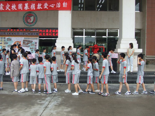 這是東莞臺商子弟學(xué)校全校學(xué)生為汶川災(zāi)區(qū)募捐的溫馨感人一幕。