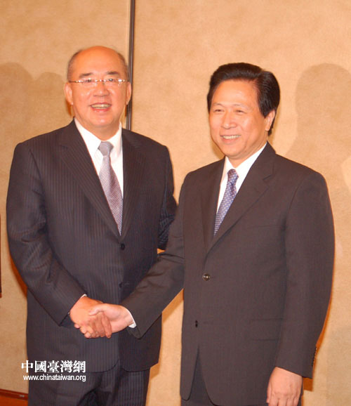 5月26日,中共江蘇省委書記梁保華在南京會見中國國民黨主席吳伯雄。 中國臺灣網(wǎng)記者田云鵬攝