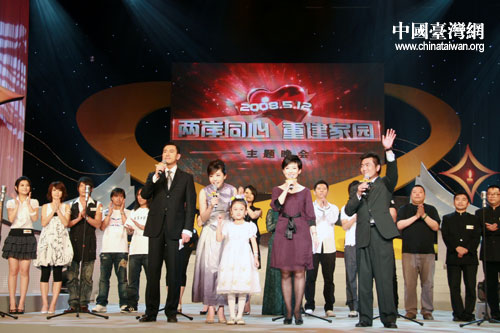 晚會(huì)由中央電視臺(tái)主持人魯健、王端端及臺(tái)灣的何啟圣 、尹乃菁共同主持。以詩(shī)朗誦、播放短片等形式,重溫了地震發(fā)生后兩岸同胞發(fā)自肺腑的同胞之愛(ài)和骨肉之情。臺(tái)灣紅十字醫(yī)療隊(duì)積極救助災(zāi)區(qū)群眾等感人情景通過(guò)大屏幕重現(xiàn),深深感動(dòng)了現(xiàn)場(chǎng)每一位演員和觀眾。兩岸同胞在危難面前同舟共濟(jì)的手足摯愛(ài),引發(fā)了一次又一次熱烈的掌聲。
