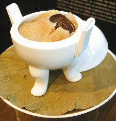 臺北“故宮晶華”餐廳筵席中的弦紋鼎,就是一道魚翅料理,島內外動物保護團體指責“故宮”把魚翅料理當寶,破壞動物保護形象。臺灣《聯合報》資料照片