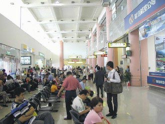 臺灣中部地區(qū)是臺商的大本營,業(yè)界全力爭取開放清泉崗機場直飛廣州、南京及北京。圖為清泉崗機場旅客大廳等機的人潮。臺灣《經(jīng)濟日報》圖