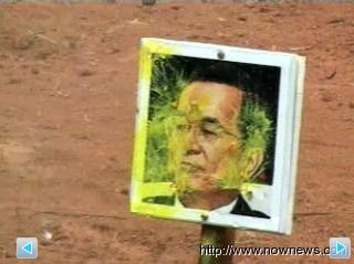 臺中都會公園一家漆彈場開辟不滿發泄區,讓游客提供討厭對象的相片當槍靶發泄,現在最紅的就是陳水扁家庭成員。來源:臺灣今日新聞