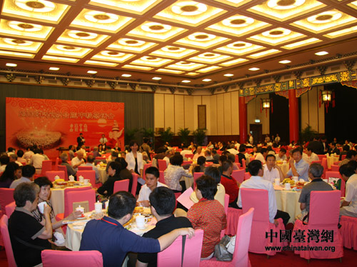 中國臺灣網9月9日消息 由臺盟中央、全國臺聯主辦的“2008在京臺胞中秋茶話會”9日在全國政協禮堂舉行。在京的臺灣企業家、臺灣學生、臺胞代表等450余人歡聚一堂,暢敘親情鄉誼,喜迎中秋佳節。全國政協副主席、臺盟中央主席林文漪,全國人大常委、全國臺聯會長梁國揚,全國人大常委、臺盟中央常務副主席汪毅夫等出席了茶話會。