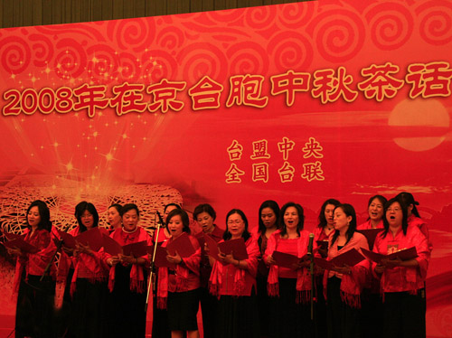 中秋佳節來臨前夕,由臺盟中央、全國臺聯主辦的“2008在京臺胞中秋茶話會”在全國政協禮堂舉行。圖為聯誼晚會現場。(攝影:董潔)