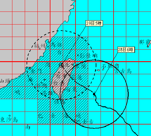 臺(tái)灣氣象部門發(fā)布的臺(tái)風(fēng)走向圖
