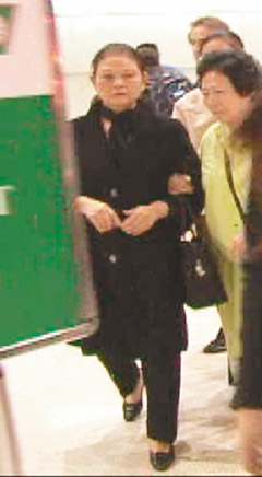 李寶珠(左)與親人忍著悲痛護送靈柩回臺
