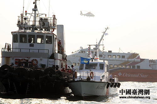 圖3:救生艇迅速集結,在水域內進行救助巡查工作(李徽 攝)