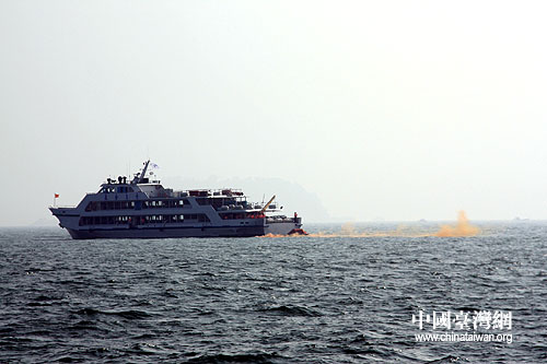 中國臺灣網10月24日廈門消息 汽笛長鳴,濃煙彌漫。23日下午,兩岸首次聯合大規模海上搜救演習在廈金航線海域進行。這是廈金航線上首次進行兩岸共同參與的海陸空聯合搜救演習,標志著兩岸海上搜救合作在互通信息的基礎上更進一步。