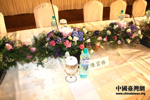二次“陳江會”即將于4日上午9點開始,現場一切就緒。圖為陳云林的坐席。中國臺灣網 田云鵬攝