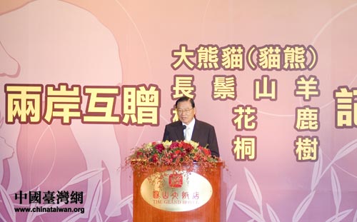 兩岸互贈珍稀動植物記者會今天在臺北舉行。這是江丙坤在致辭。中國臺灣網 田云鵬攝