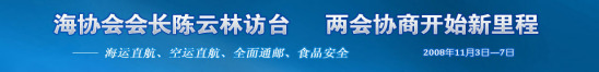 在舉世矚目的“陳江會談”中,除協商達成空運、海運、郵政、食品安全四項協議外,兩會還特別于5日共同主辦了兩岸金融座談會、兩岸工商及航運座談會。陳云林說,這是他此行的兩大任務之一,希望兩岸能就如何共同面對金融海嘯的沖擊,相互合作、共度時艱交換意見;江丙坤說,兩岸業界人士、專家通過座談,找出病因并對癥下藥,其重要性不亞于4日兩會簽署的4項協議。
