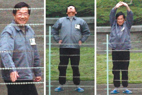 陳水扁12日下午在臺北看守所放風運動,不斷擺姿勢給在附近的臺灣媒體記者拍攝。臺灣《聯(lián)合報》資料圖