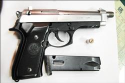 臺灣一男子因停車糾紛遭人開槍,子彈從左側(cè)臉頰射入,彈頭卡在右下牙床上,與死神擦身而過,圖為警方起出嫌犯作案用的改造手槍及1顆彈殼。