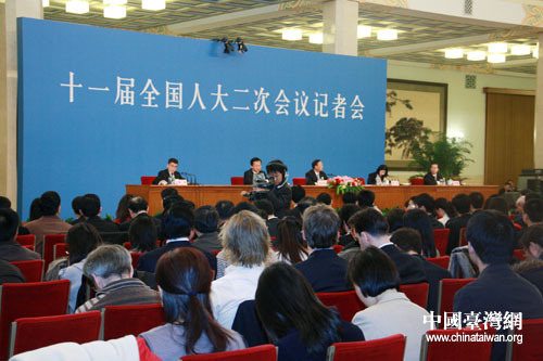 中國臺灣網3月7日北京消息 十一屆全國人大二次會議于3月7日(星期六)上午10時在人民大會堂三樓金色大廳舉行記者會,由外交部部長楊潔篪就外交政策和對外關系問題回答記者問。(圖文/鐘寶華)