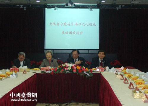 由全國(guó)臺(tái)聯(lián)組織的首個(gè)大陸老臺(tái)胞返鄉(xiāng)謁祖文化參訪(fǎng)團(tuán)明日啟程,圖為全國(guó)臺(tái)聯(lián)舉辦歡送會(huì)。(中國(guó)臺(tái)灣網(wǎng)記者 張弛 攝)