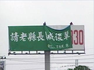 李俊毅刊登“請老縣長(指陳唐山)牽成后輩”的戶外廣告 來源:臺灣“今日新聞”