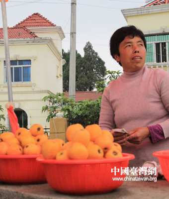 白玉村民在路邊向游客銷售枇杷。她家里有100多棵枇杷樹,今年收成不錯,收入可以有2—3萬元。 (中國臺灣網 田云鵬 攝)
