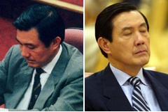 圖左,1998年12月1日,馬英九時(shí)任臺(tái)北市長(zhǎng)候選人,皮膚光滑羨煞人,一點(diǎn)斑點(diǎn)都沒有,雙眸炯炯有神。圖右,2008年5月22日,馬英九就任臺(tái)灣當(dāng)局領(lǐng)導(dǎo)人后與媒體記者茶敘,眼角魚尾紋夾死蚊,左眼尾陳年曬斑快成老人斑,眼袋、淚溝顯疲憊。來(lái)源:臺(tái)灣《聯(lián)合報(bào)》
