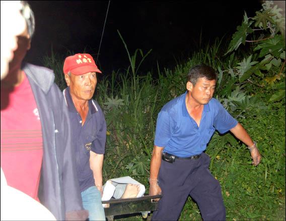 許順東遺體準(zhǔn)備抬上車。圖片來源:臺灣《自由時報》