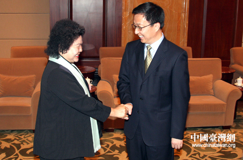 5月23日下午,上海市市長韓正在上海興國賓館會見了高雄市市長陳菊。(中國臺灣網 田云鵬 攝)
