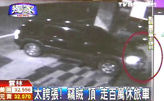 臺灣一竊賊用車頭“頂”車尾,盜走百萬休旅車。(圖片來源:臺灣TVBS電視臺)