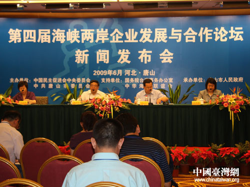 第四屆海峽兩岸企業(yè)發(fā)展與合作論壇組委會14日下午在唐山舉行新聞發(fā)布會, 介紹前三屆“海峽兩岸企業(yè)發(fā)展與合作論壇”的概況、本屆論壇的特點、籌備情況及日程安排。(中國臺灣網(wǎng) 肖燕 攝)