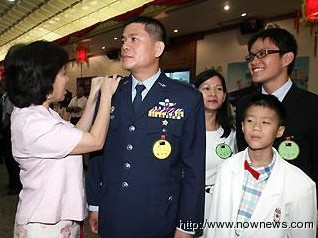倍感榮耀的家屬,為陳金龍掛上將星。(圖片來源:臺灣“今日新聞”)