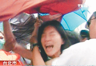 陳幸妤隨后開始狂喊“你們這樣天天跟,影響我的孩子!”旁邊的護衛隊立即拿雨傘隔開她與記者,并拉著她繼續往前走,但她仍喊叫“你們真是夠了!”隨后又向護衛隊高喊“不要勒我的脖子啦”,這時陳幸妤突然沖向一名攝影記者,右手還高舉過頭作勢打人,嚇得攝影記者不斷往后退。
