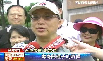 臺中市長胡志強為拿邁克·杰克遜CD撞傷嘴角。來源:臺灣TVBS電視臺