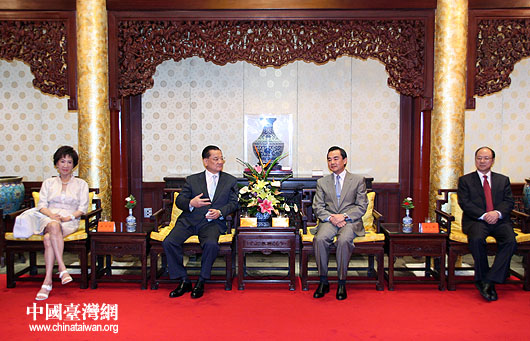 7月26日下午,中共中央臺辦主任王毅在北京釣魚臺國賓館會見中國國民黨榮譽主席連戰一行。(中國臺灣網 鐘寶華 攝)