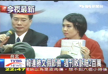 《壹周刊》確定賠償連惠心200萬。圖片來源:臺灣TVBS電視臺