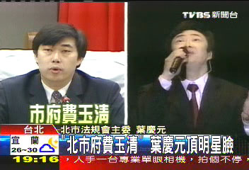 臺北市府版“費玉清”葉慶元(圖左)。圖片來源:臺灣TVBS電視臺