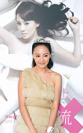 關穎的新書記者會,身后照片突破入行以來拍攝最大尺度。圖片來源:臺灣《聯合報》