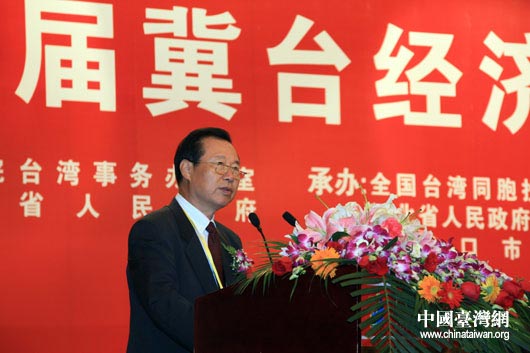 “第八屆冀臺經濟合作洽談會”8月8日在張家口舉行,海峽兩岸關系協會副會長王在希出席開幕式并致辭。(中國臺灣網 鐘寶華 攝)
