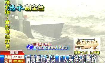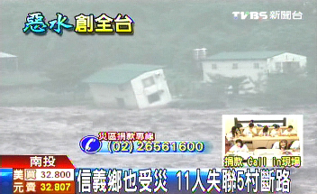 位于東埔村的沙里仙養(yǎng)鱒場,在風雨中被催毀,包括老板和員工總共11個人都失聯(lián);另外東埔村第一鄰,也有300個人無家可歸,全部被暫時安罝在活動中心;神木村也爆發(fā)泥石流,15戶民宅頓時被沖毀倒塌,幸好300個人緊急疏散,目前都沒有生命危險。