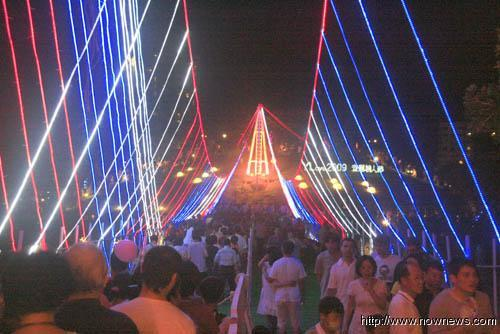 據(jù)臺灣“今日新聞”報(bào)道,2009宜蘭七夕情人節(jié),26日7點(diǎn)7分在羅東運(yùn)動公園虹明湖熱烈登場,跨湖星光鵲橋在暗夜中亮起的剎那,現(xiàn)場一陣驚呼,一對對有情人緩緩過橋,煞是浪漫又美麗。