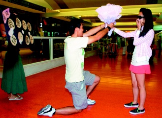機(jī)場大廳上演浪漫求婚